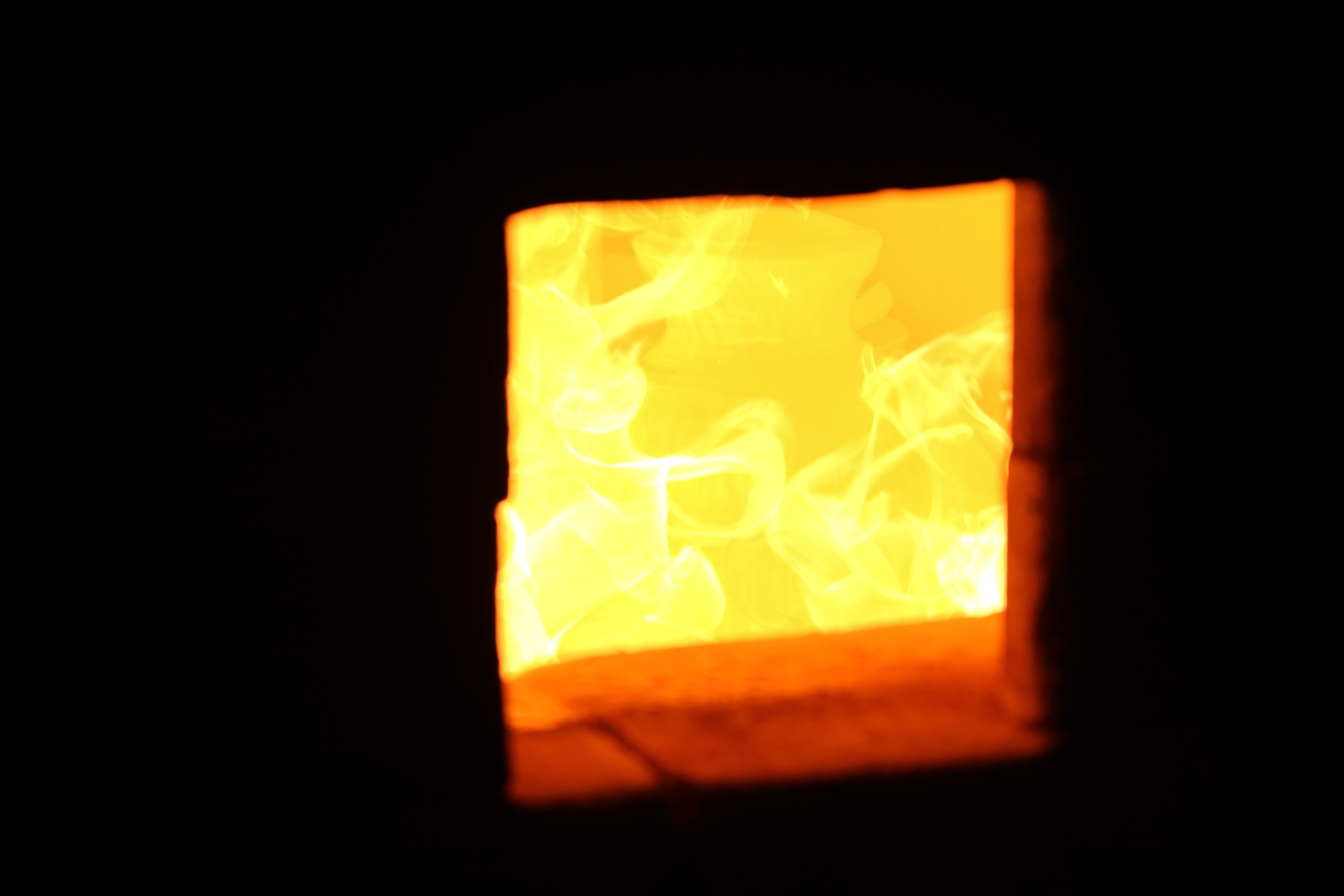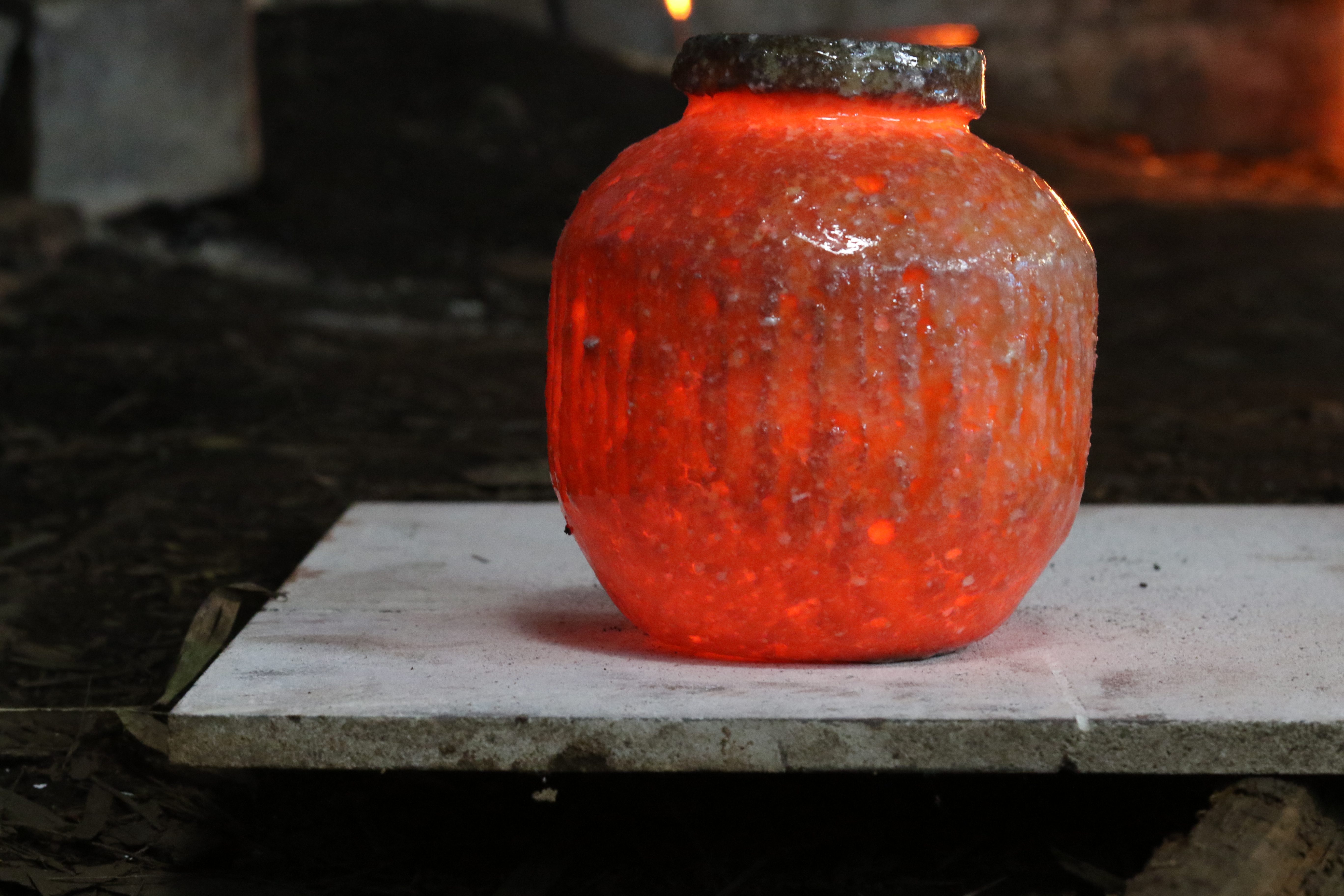 庭先に耐火レンガを積んで1300℃以上の温度にします。10:00〜16:00。